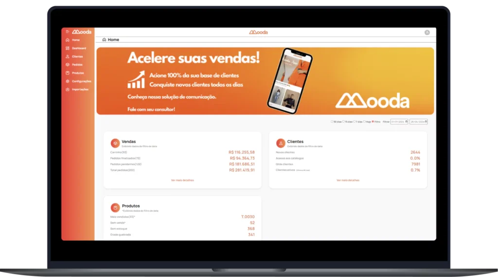 A Mooda é a solução digital que conecta sua marca a lojistas de qualquer lugar, 24 horas por dia, maximizando suas vendas em tempo real.